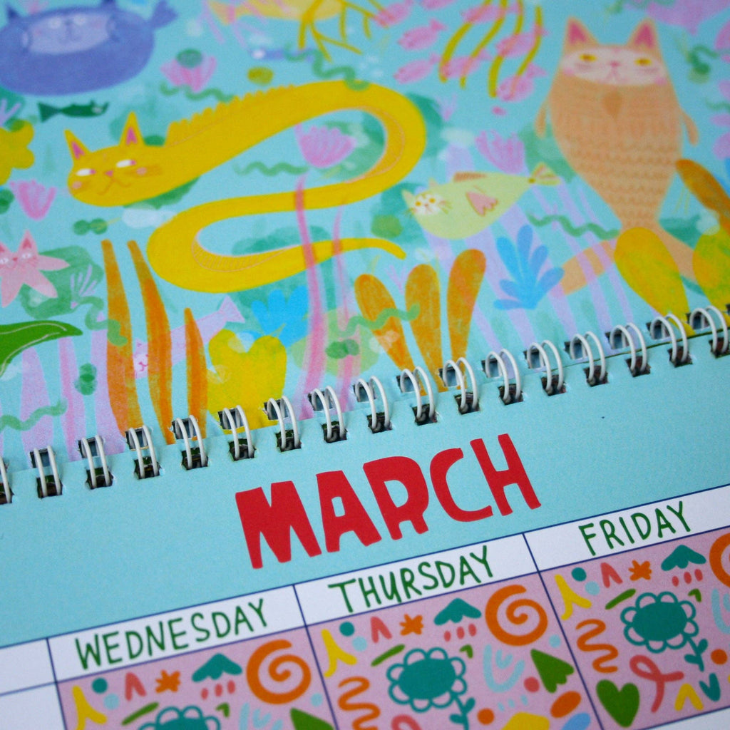 Since 2012 able & Game have been designing a yearly cat themed wall calendar. They're are huge cat lovers and draw inspiration from their own cat, the cats they see around their neighbourhood and the countless cats that appear in their social media feed. The 2026 Kitty Calendar is full to the brim with cute cat illustrations, ready to go up on your wall and help you stay organised. When drawing this, their two kitties, Lemmy and Evie were always nearby.