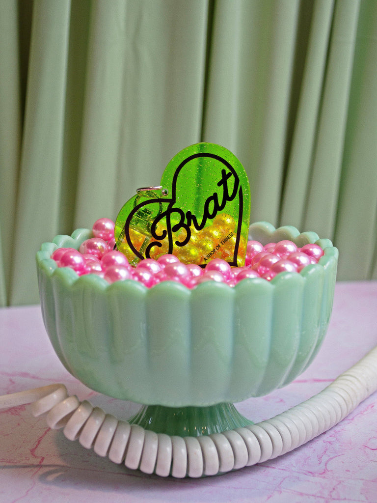 Brat forever!! This classic keychain, now in brat green! Special silver stay-closed clasp that's easy to add to your keyring without ruining your manicure.
