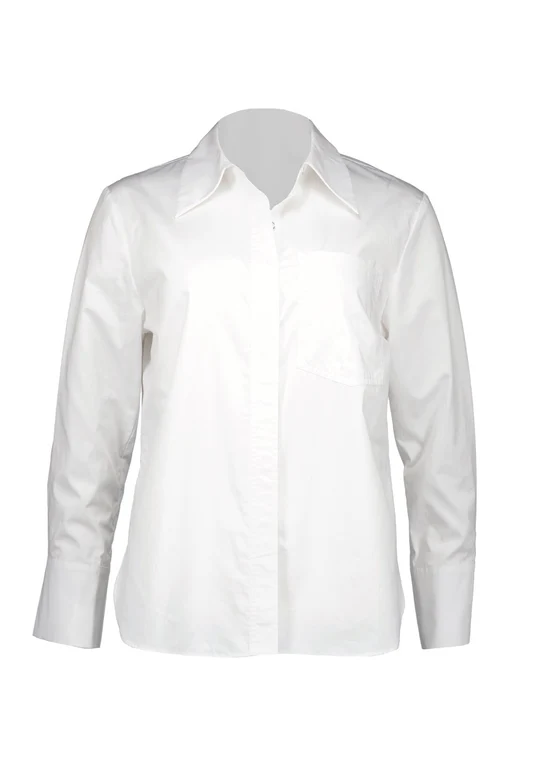 - Long pointed shirt collar, left chest pocket, long sleeves with button cuffs and side splits