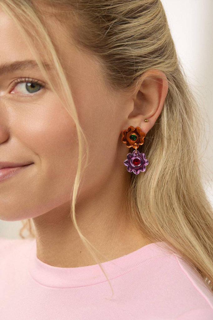 Bloom with sparkle. Bubble-shaped flowers accented with a twinkling crystal. These fun drop earrings are sweet, playful, and just a little bit fancy.