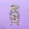 Finally, a wall hanging that’s both dreamy and functional. This pastel shooting star creation combines soft suedette, metallic shimmer, and glittery panels to deliver whimsical organisation for all those tiny clips. Satin ribbons cascade from the shooting star, each tipped with a gold-glitter padded star, waiting to hold all their favourite accessories.