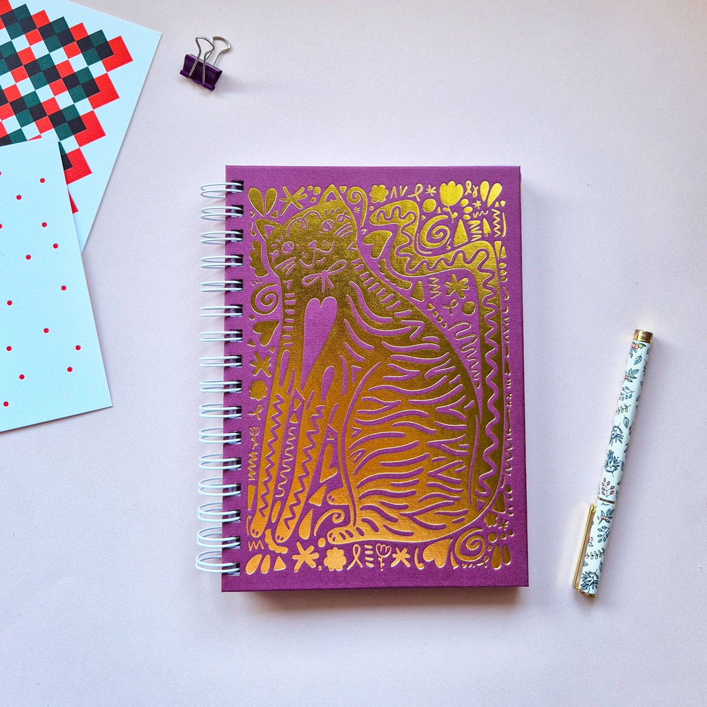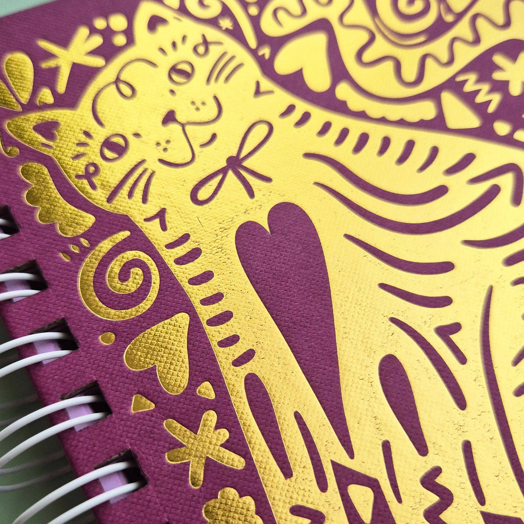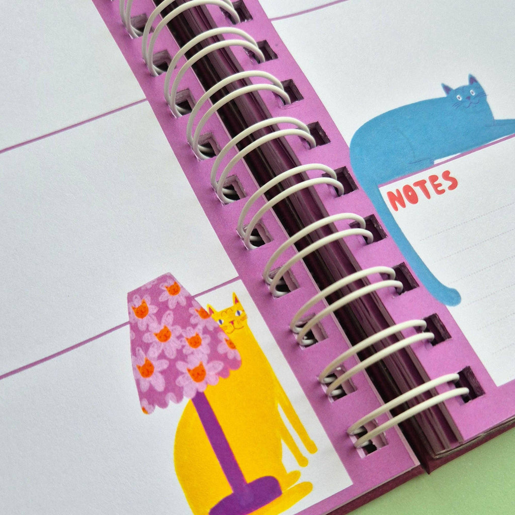 Able & Game's 2026 Kitty Diary is a celebration of cats. Full to the brim with over 200 cat illustrations, this diary will be a joy to use for any cat lover. This diary features a stunning gold foil cat illustration on the cover, 120gsm paper throughout and a handy plastic pocket at the back. The diary is printed and bound in Able & Game's studio and all the components come from other Melbourne based businesses. The diary is A5 in size and is spiral bound with a white coil.