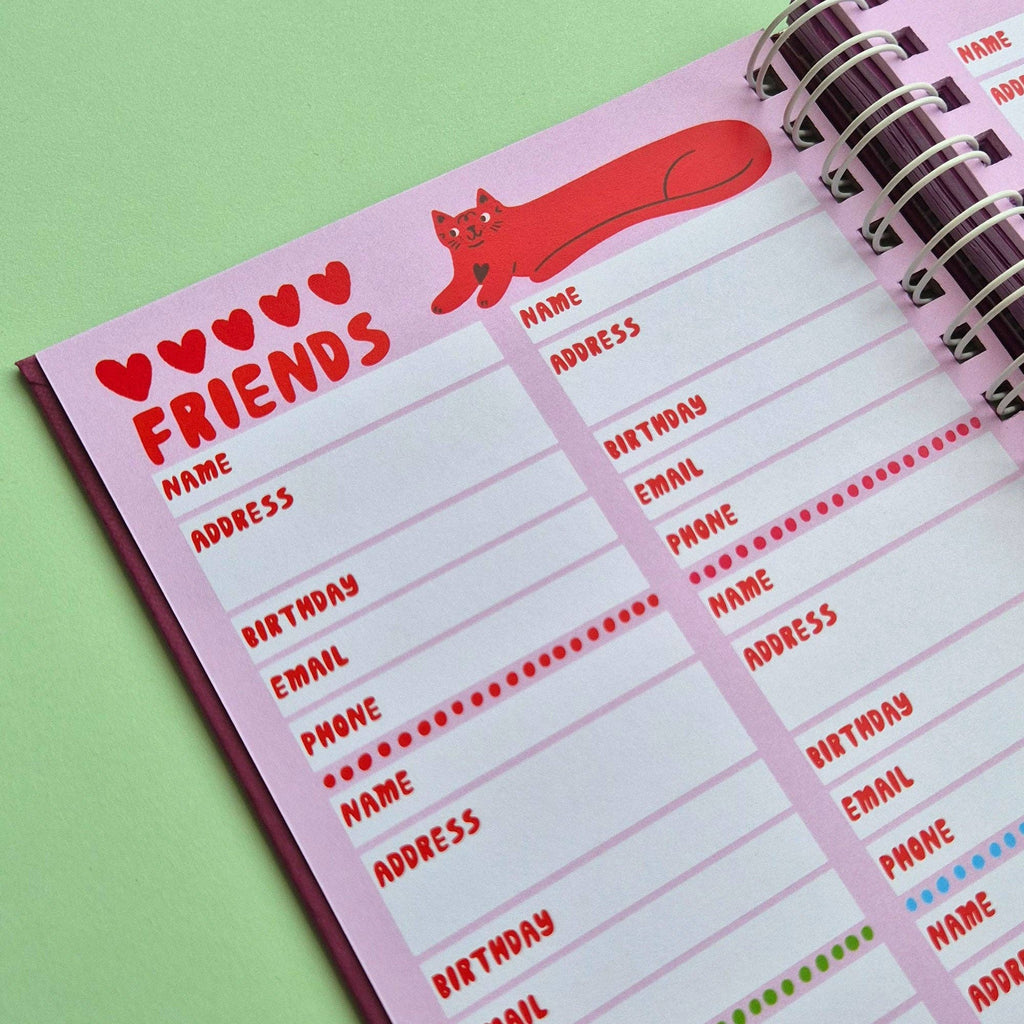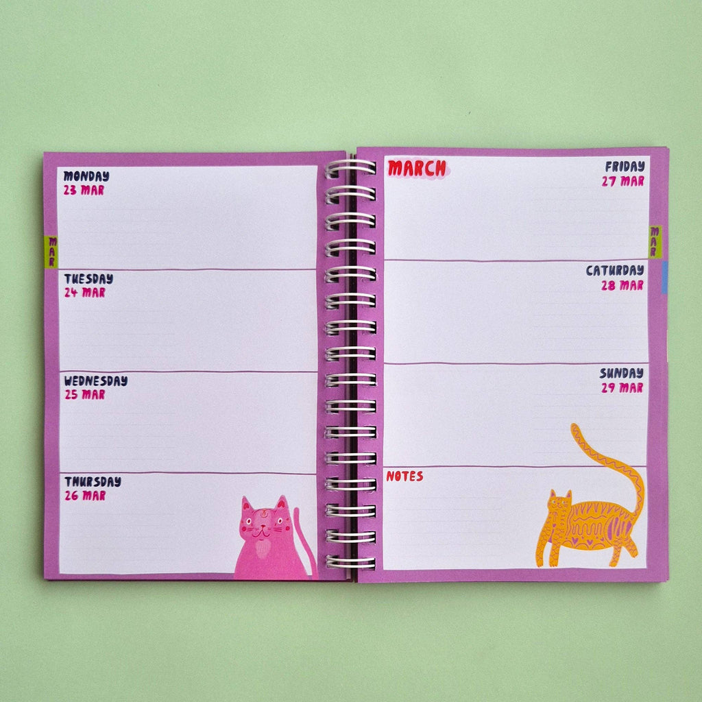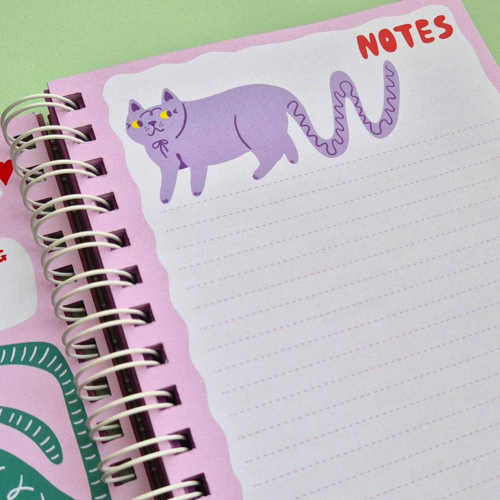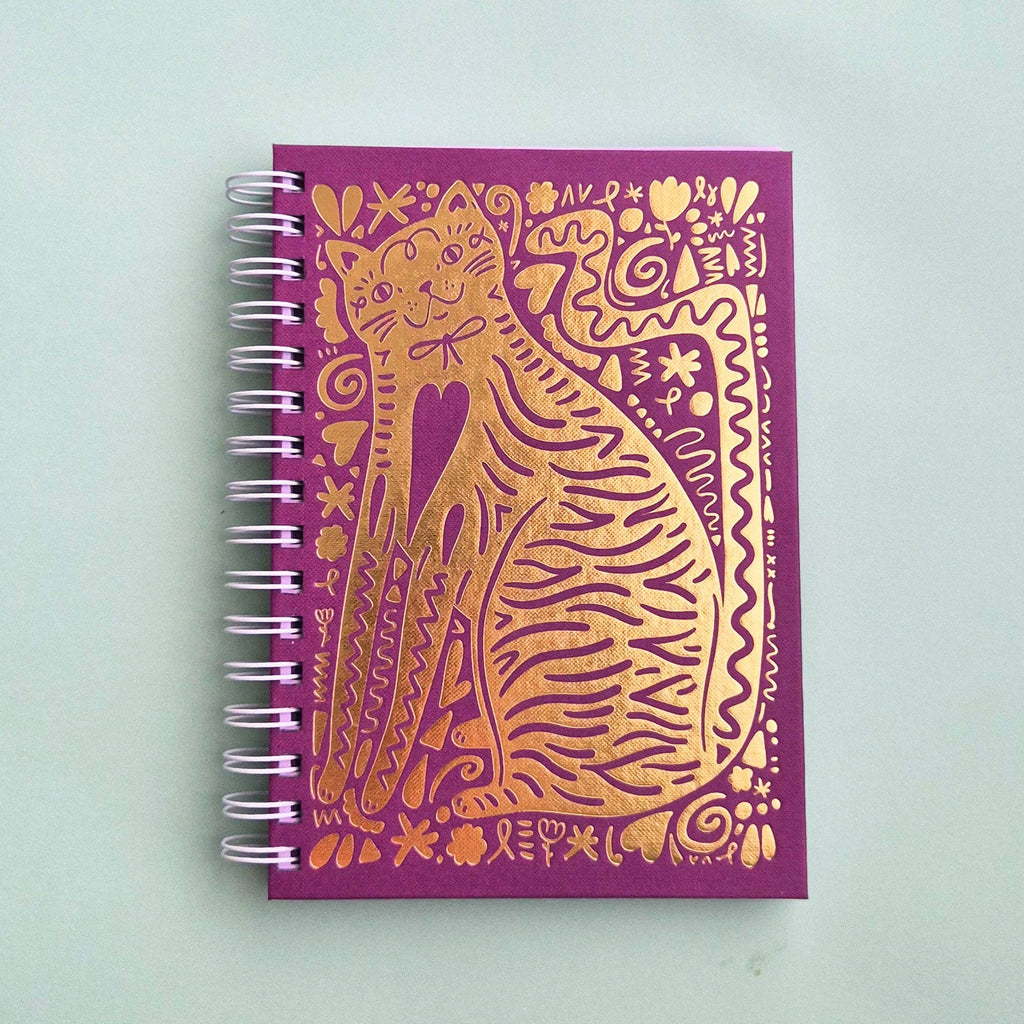 Able & Game's 2026 Kitty Diary is a celebration of cats. Full to the brim with over 200 cat illustrations, this diary will be a joy to use for any cat lover. This diary features a stunning gold foil cat illustration on the cover, 120gsm paper throughout and a handy plastic pocket at the back. The diary is printed and bound in Able & Game's studio and all the components come from other Melbourne based businesses. The diary is A5 in size and is spiral bound with a white coil.